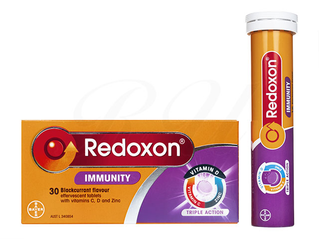 Each Redoxon Immunity Tablet Contains: Vitamin C (Ascorbic Acid) 1000mg, Vitamin D 400IU (Colecalciferol) 10mcg, Zinc (as Zinc Citrate Trihydrate) 10mg.