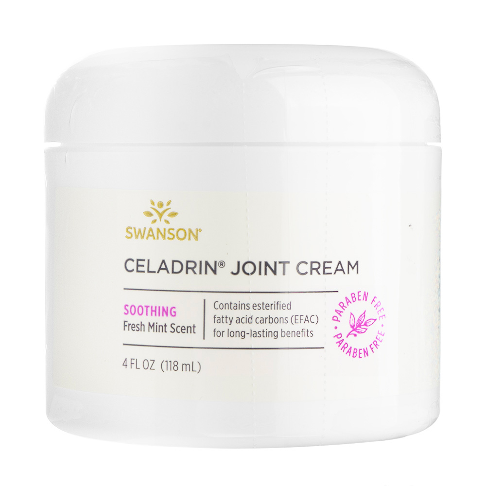 SWANSON(スワンソン)のセラドリン ジョイントクリームは、配合の独自成分、エステル化脂肪酸炭素(EFAC)が関節の柔軟性をサポートし快適さを提供します。さらに、配合のオリーブオイルとペパーミントオイルが肌に潤いを与え、リフレッシュ作用をもたらします。