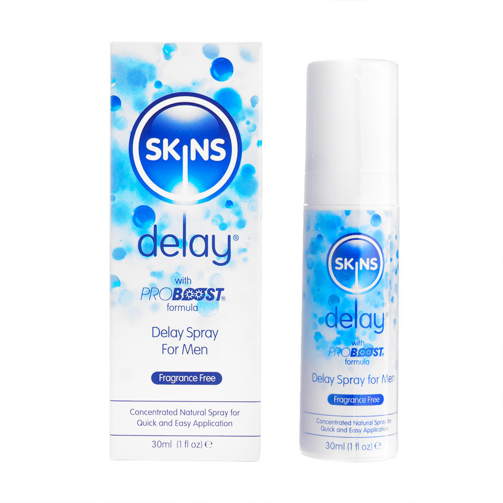 SKINS(スキンズ)のディレイ スプレーforメンは、使用していることが分からないように、前もって塗布できます。パートナーに優しく、成分の移行もなくオーラルセックスにも適しています。保湿性のある水性タイプで、デリケートゾーンに最適なpHバランスになっています。アメリカ製です。