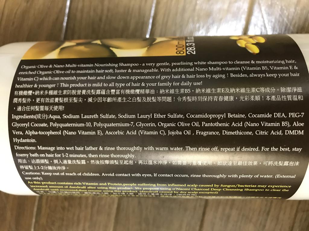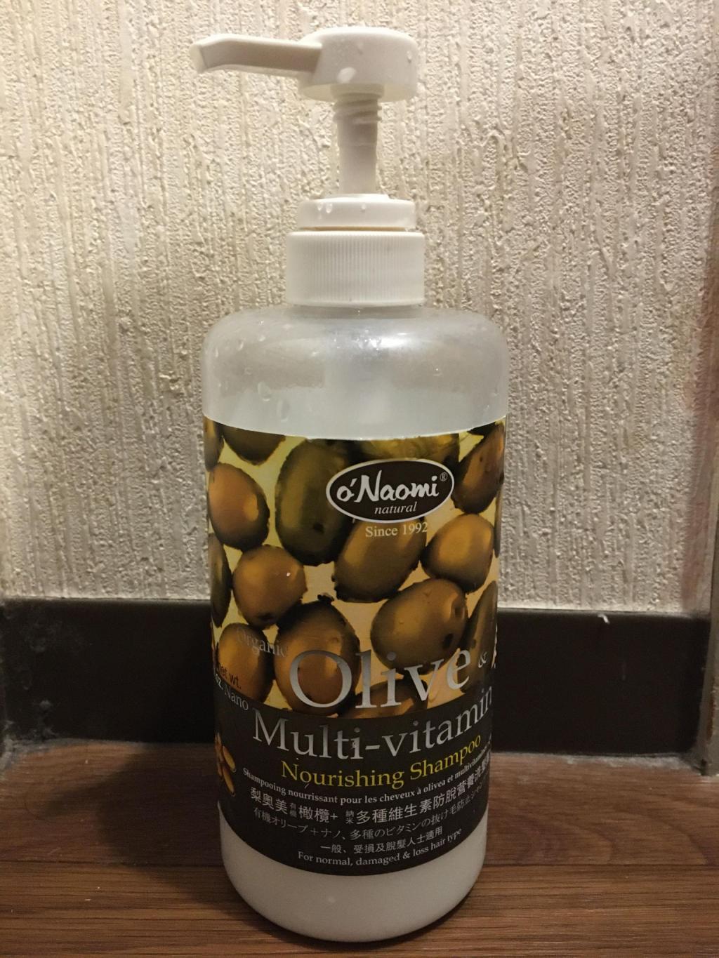 Naomiシャンプーはこれで、2本目です。日本で売ってればいいのだけれど、それがございませんもので。オリーブの実の効果はやさしくて良いですね。ふあっとした感じが髪全体に残ります。あと白髪防止になるというも、もし本当なら最高です。