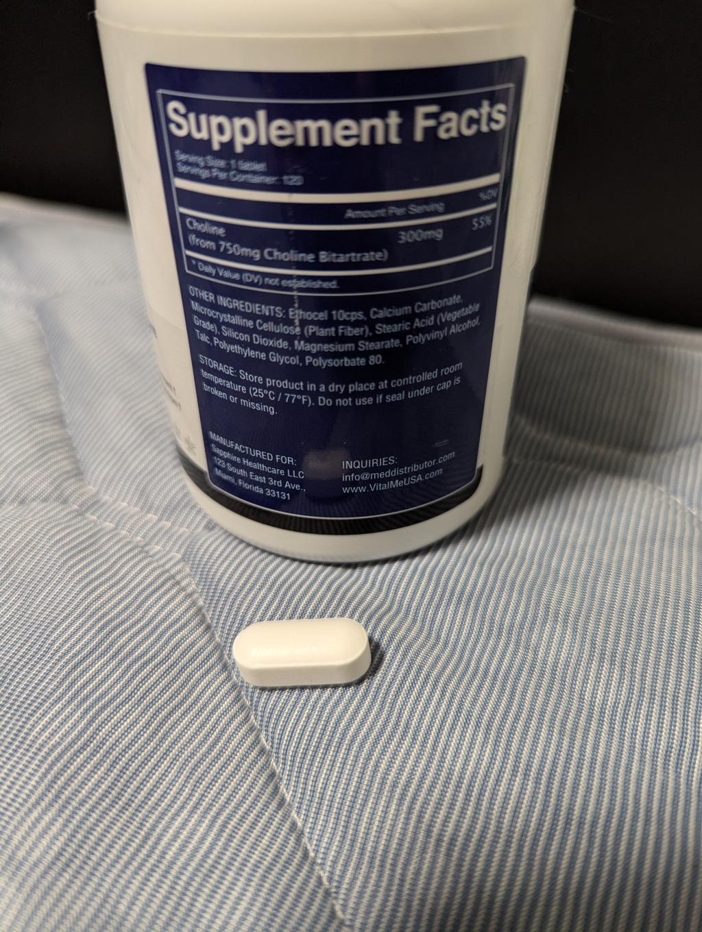 なんとかこの状況を改善できないかと、コリン含む数種類のサプリメント(全てバイタルミー社製品)を飲み始めました。