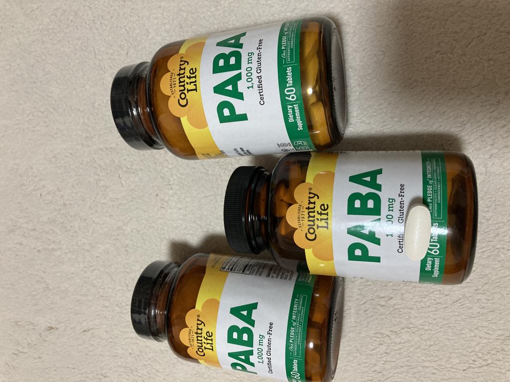 PABAは今回初めて購入しました。Lシステイン トラネキサム酸 ビタミンCと服用しています。身体は白くなってきたましたが顔が白くならないのでPABAを購入して一緒に飲んでみようと思います。まだ一か月もたってないので3か月服用してみてまたレビューします。期待を込めて星4つです。