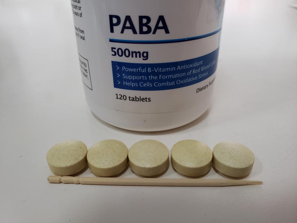 美白効果のあるサプリも併用しているので,白髪の増加が心配でしたが,PABAの効果でおさえられることに期待です。