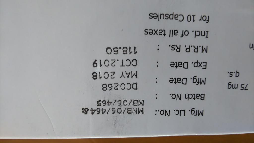 夕食後75mgを1カプセル服用しました。