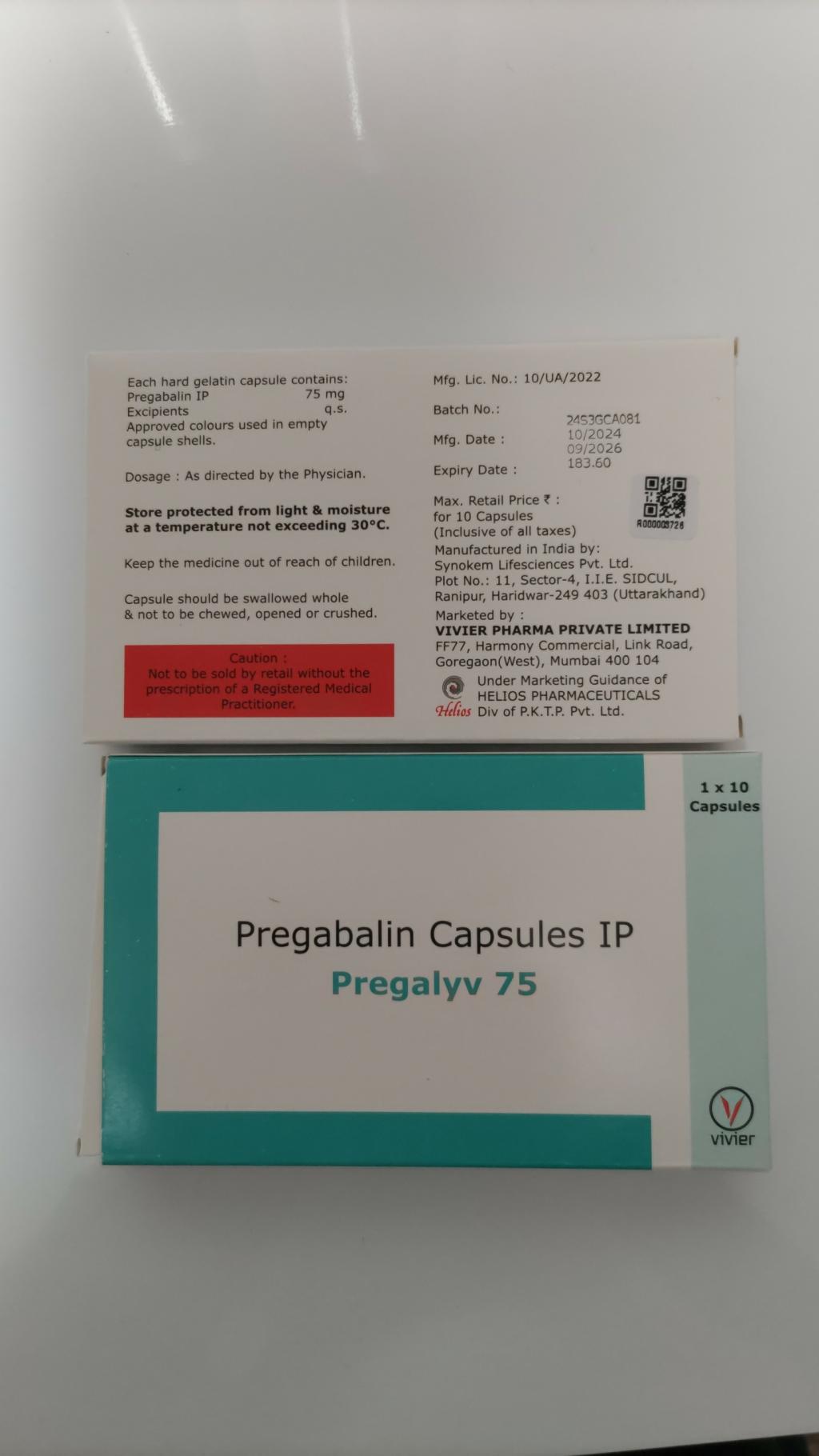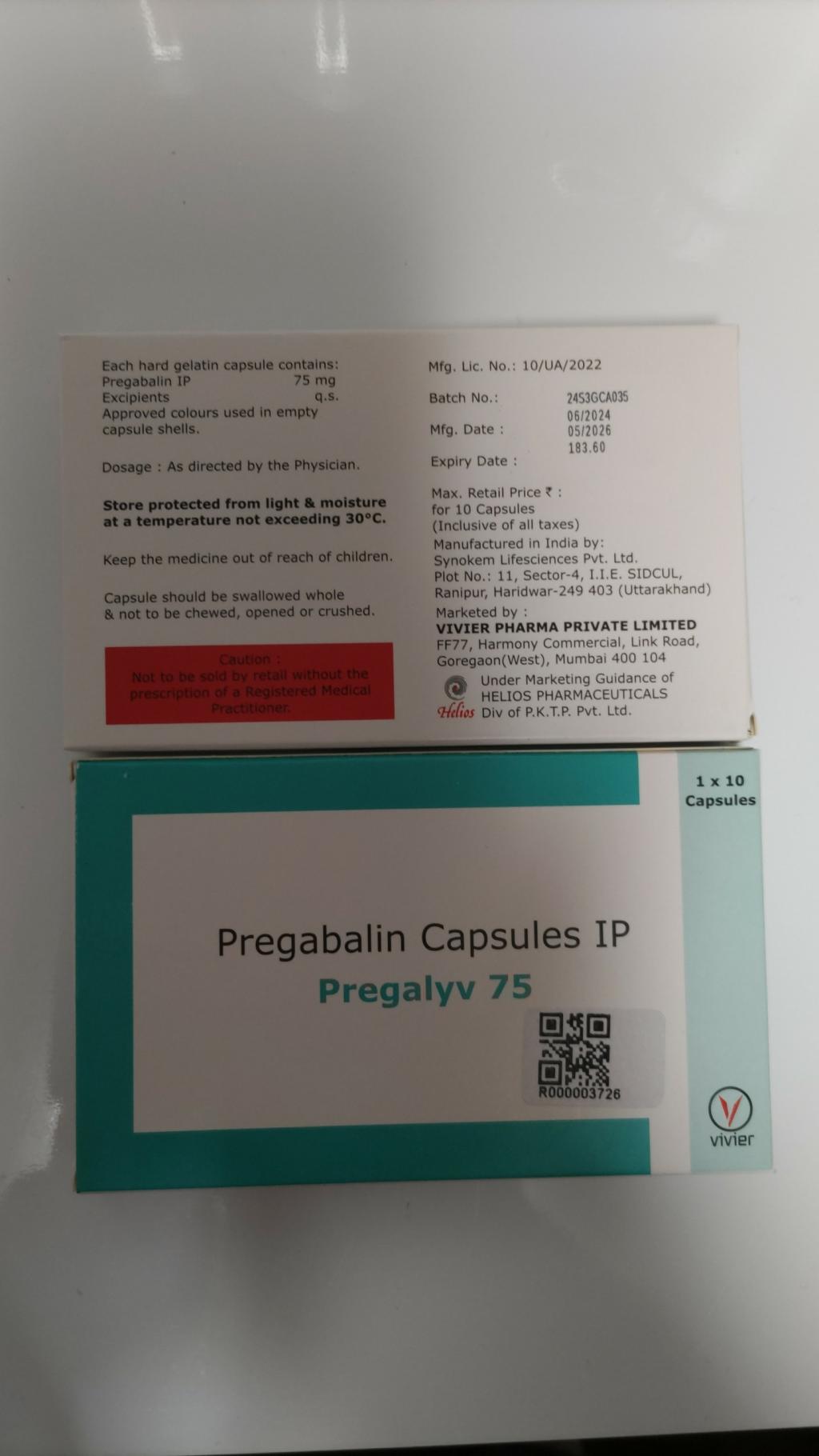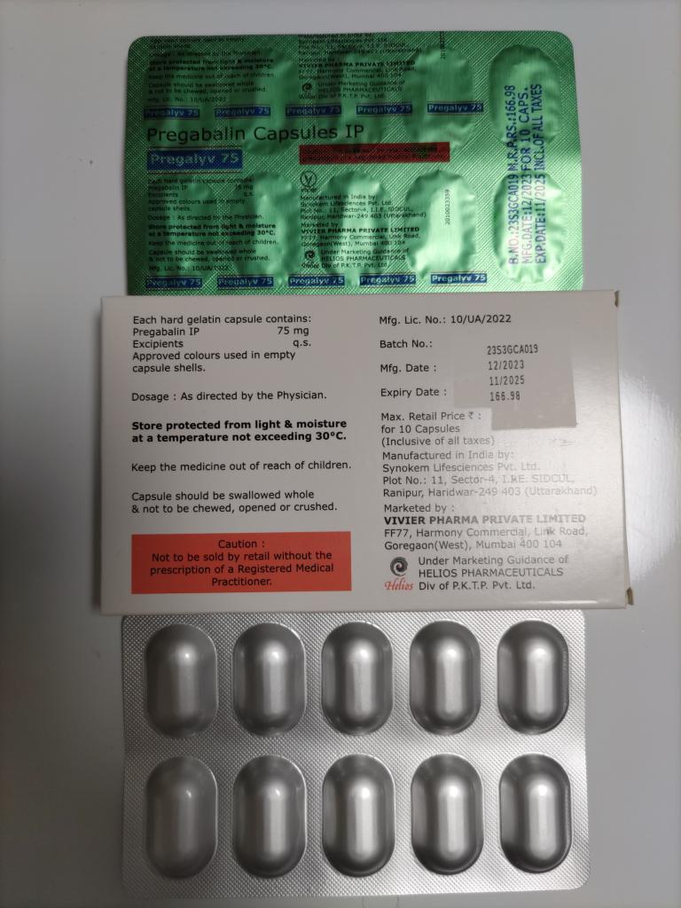今回、全身神経性疼痛の為に購入。結果から言うと、効果は抜群。1カプセル 75mgを服用して1時間もすると体中の圧痛点から痛みが消え、全身が軽くなるのを感じた。
