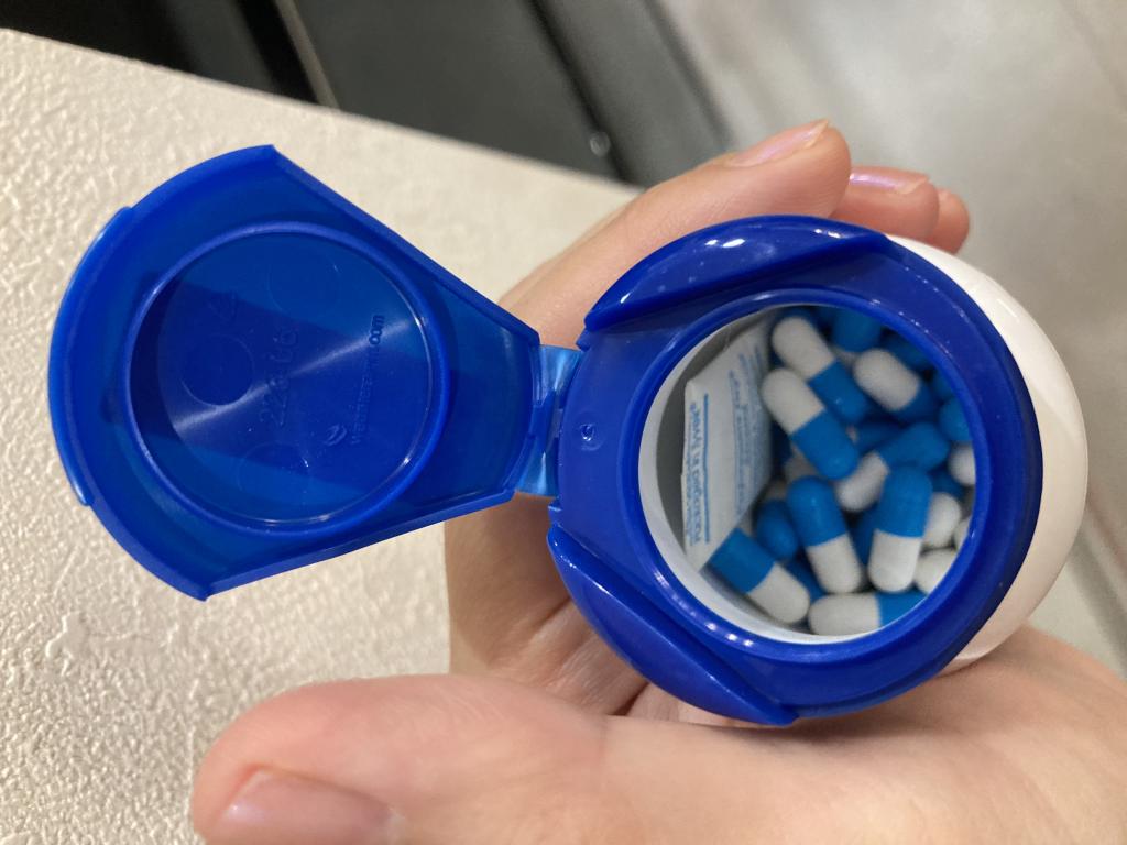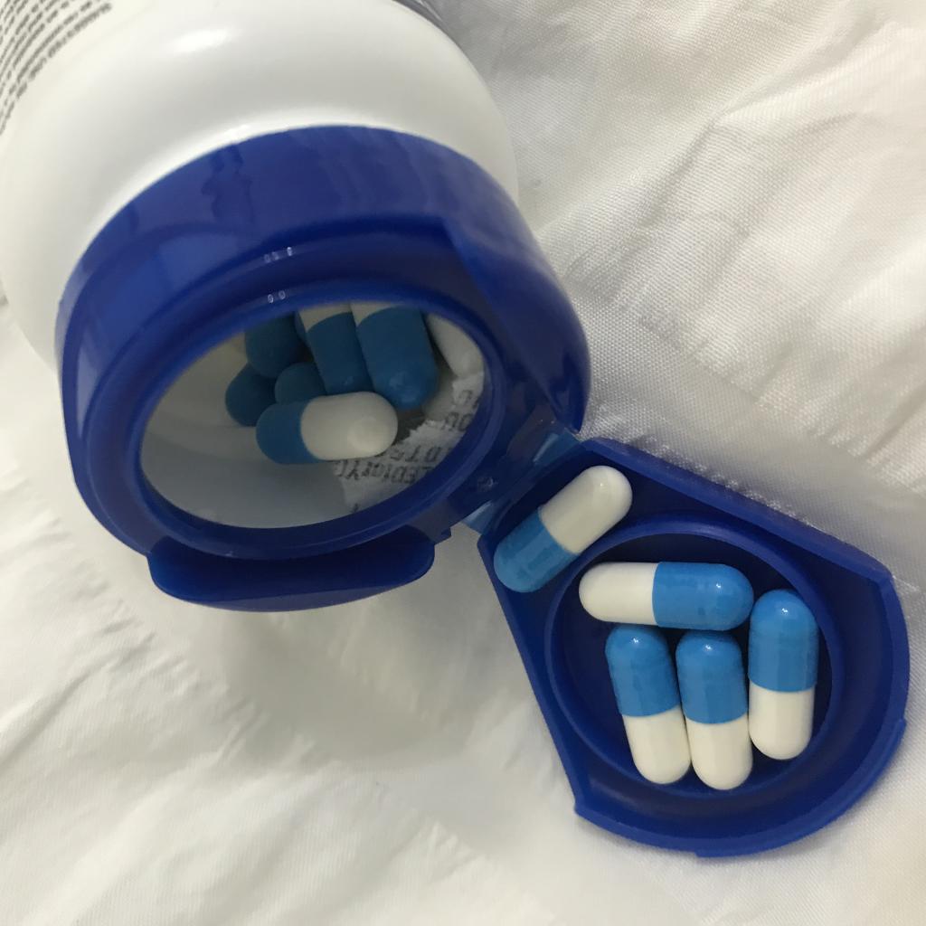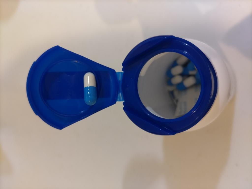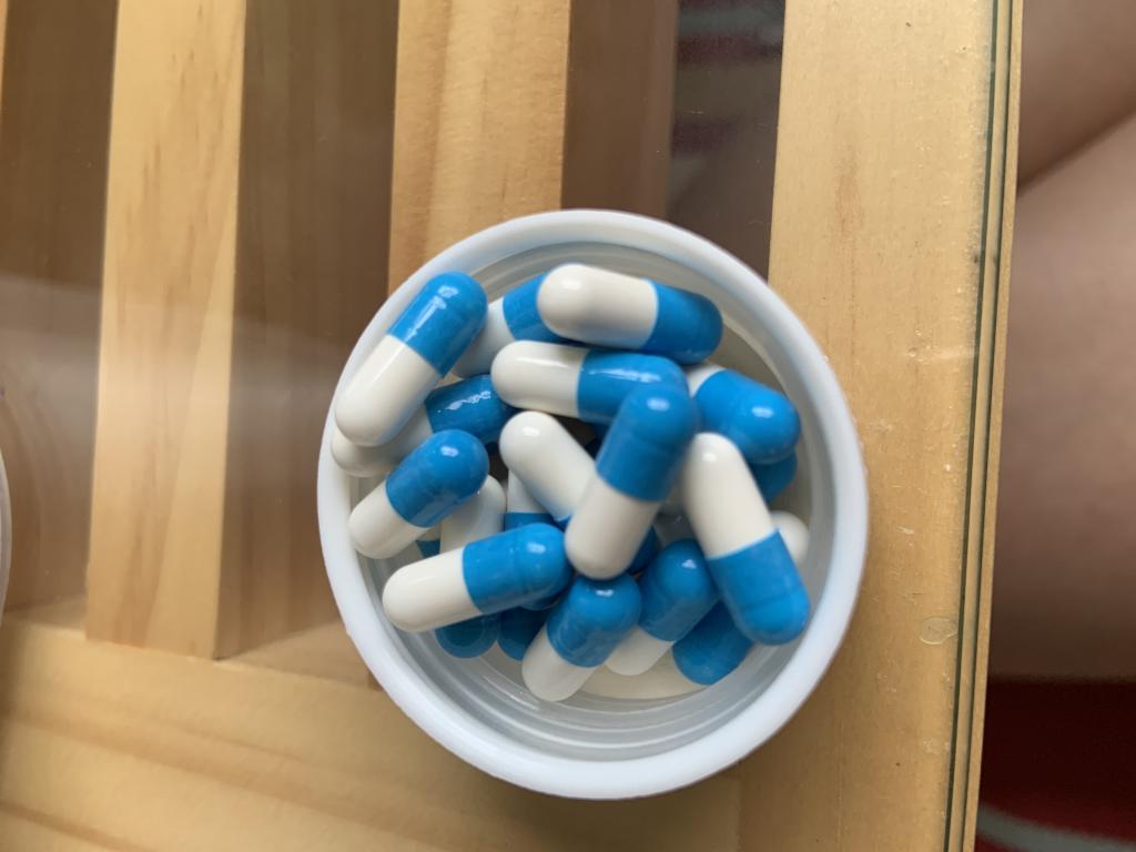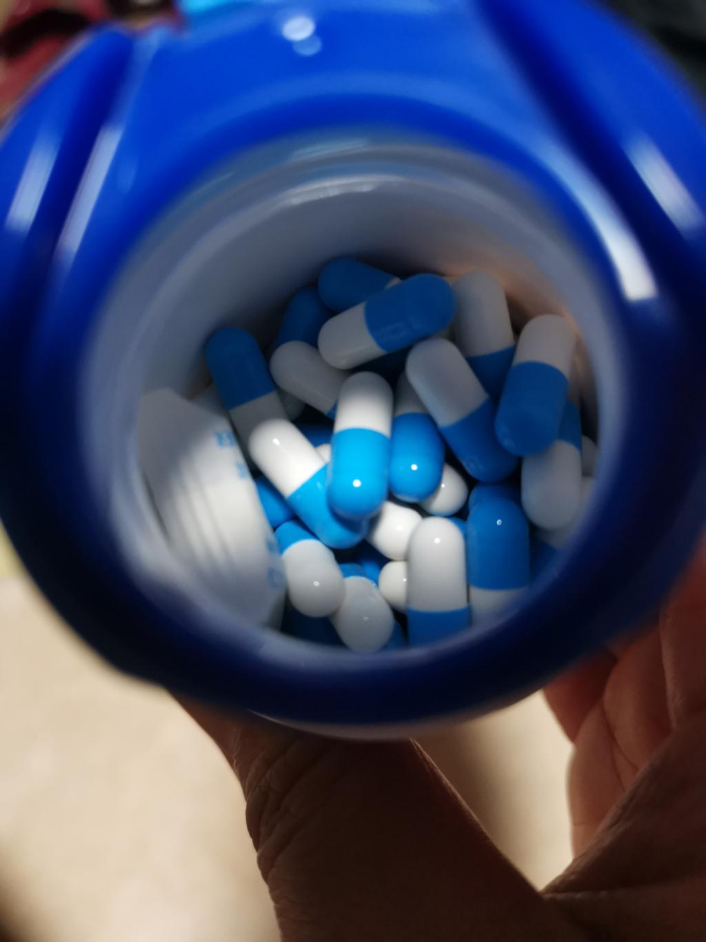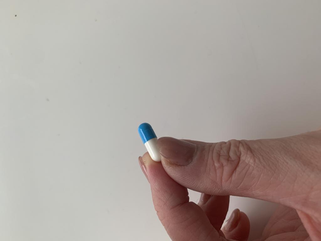 青と白のカプセルです。
