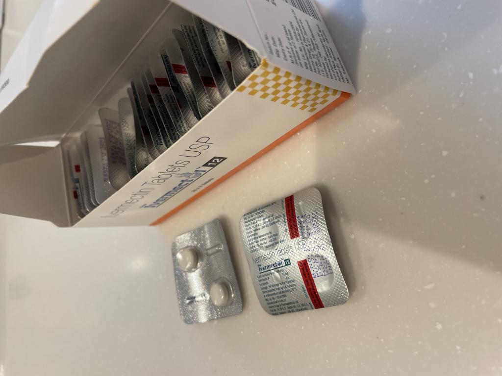同成分の国産薬ストロメクトール3mgの取説PDFが見つかったので参考にしつつ、自分は体重85kgなので1回あたり1.5錠に。イベルメクトールは1錠あたり4倍の12mgなので計算を間違えないようにご注意を。