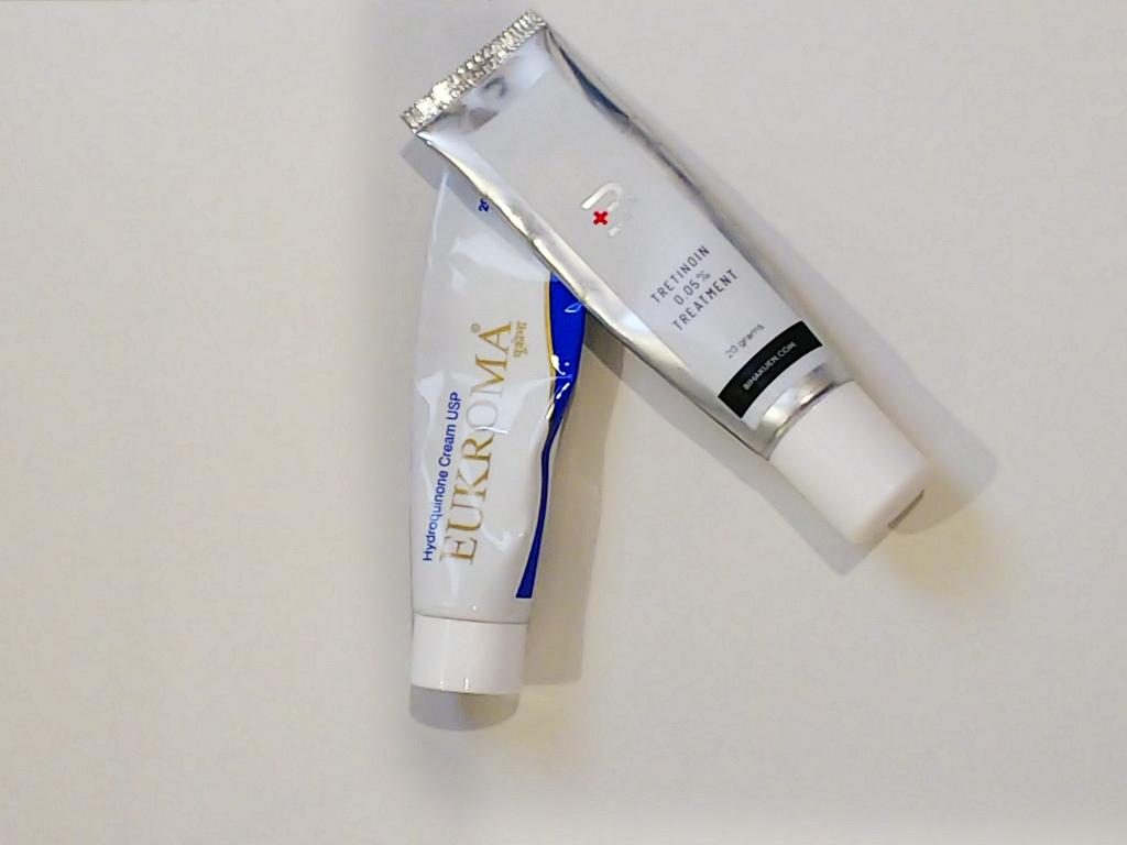 トレチノイン、ハイドロキノンの組み合わせで使用しています。